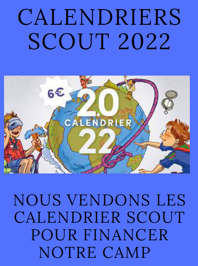 Campagne Calendriers 2022 Publié le 14 novembre 2021 par saintjosephwaterloo Les Louveteaux des Unités Saint Joseph vendent les Calendriers Scouts 2022 au prix de 6€ afin de financer leur camp, merci de leur réserver bon accueil, et n’oubliez pas d’en offrir à vos amis ! Partager : Cliquer pour partager sur X(ouvre dans une nouvelle fenêtre) X Cliquez pour partager sur Facebook(ouvre dans une nouvelle fenêtre) Facebook Cliquer pour imprimer(ouvre dans une nouvelle fenêtre) Imprimer J’aime chargement…